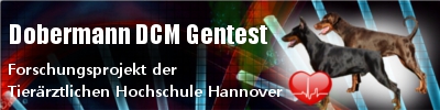 Ziel dieses Projektes ist es, speziell für den Dobermann den Erbgang zu analysieren, die Regionen im Erbgut zu finden, die zu DCM führen und schlussendlich daraus einen DCM-Gentest für den Dobermann zu entwickeln. Um dieses Ziel zu erreichen, bedarf es aber in erster Linie der Mithilfe von Züchtern und Besitzern der Rasse Dobermann. Mit der Einsendung einer Blutprobe ihrer Hunde liefern sie den Grundstoff zum Erreichen dieses Zieles. Um zur Homepage zu gelangen bitte auf das Banner klicken!